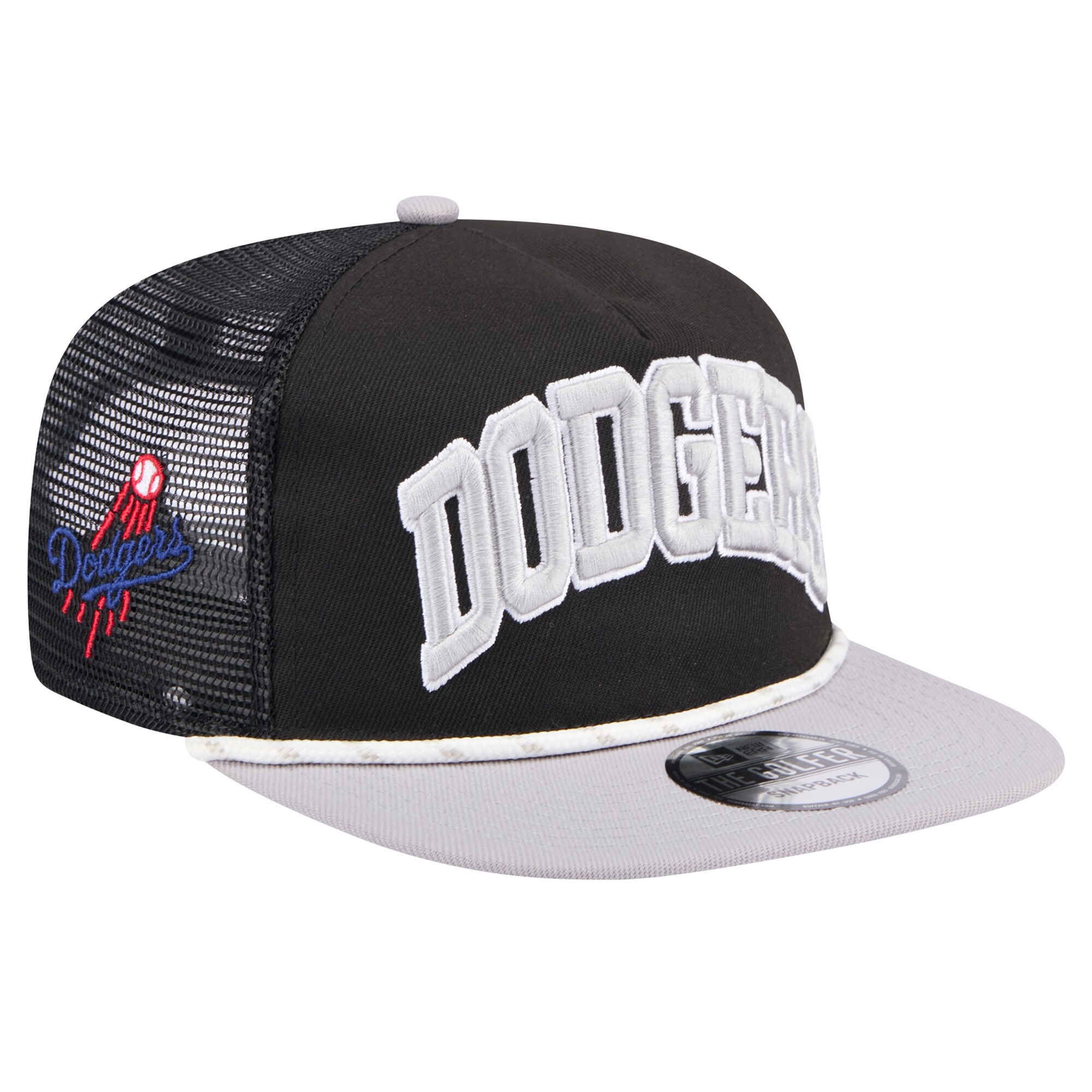• Showcase your unrelenting Los Angeles Dodgers fandom by topping things off with this Throwback Meshback Golfer hat from New Era. It features a sizable Los Angeles Dodgers wordmark embroidered across the front panels and a rope decoration resting below it on the bill. The mesh mid and rear panels help you enjoy a welcome breeze, while the snap closure ensures your perfect fit is never more than a snap or two away.