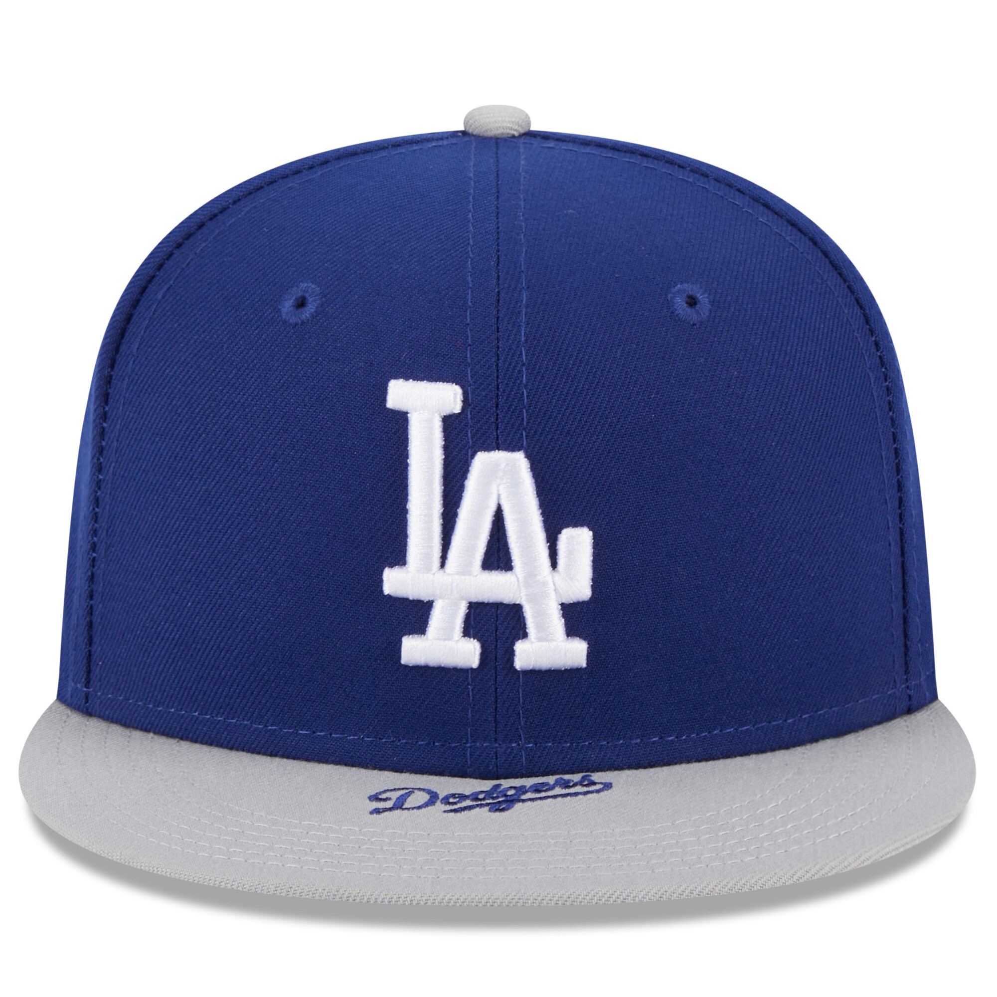 Pay a nod to your MLB favorites by finishing your look off with this bold Los Angeles Dodgers 9FIFTY snapback hat from New Era. It features raised Los Angeles Dodgers embroidery on the front panels and a fabric applique on the right side crown that show your unyielding team spirit. The two-toned crown and bill also give this hat the perfect finish, while the snap closure makes it easy to secure the perfect fit.